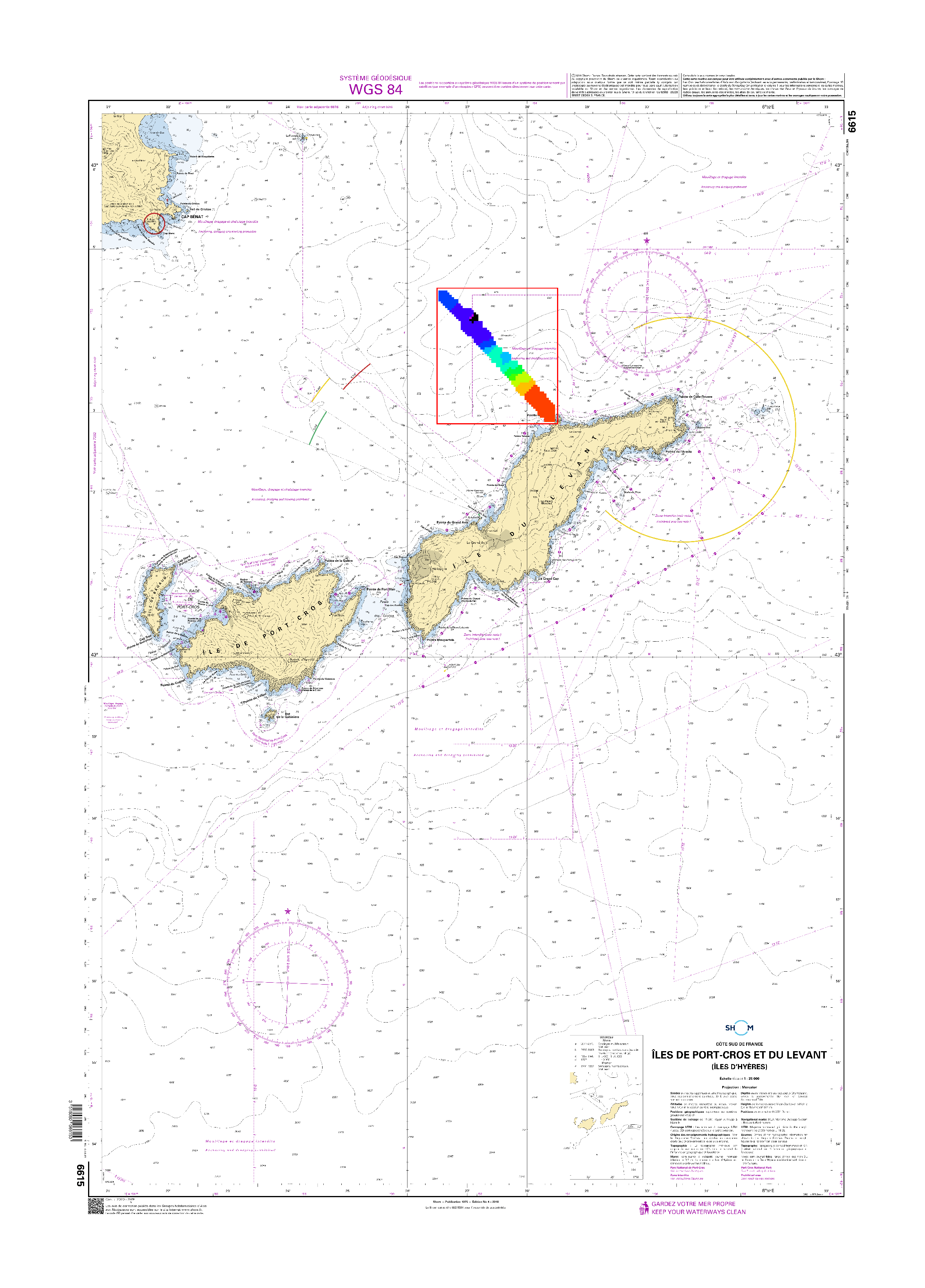 Bathymetric datasets are an extraction of surveys belonging to the Shom public database. For depth up to 50m, the vertical precision of soundings varies from 30cm to 1m and the horizontal precision varies from 1 to 20m. In deep ocean, the vertical precision is mainly around 1 or 2% of the bottom depth. It is sometimes more, it depends on the technology used. The data are referenced to ZH which is assimilated to LAT. Data are corrected for sound velocity variations. Data are acquired during the campaign S199108500 (http://dx.doi.org/10.17183/S199108500). // Instruments: sondeur deso 20 | sondeur lateral // Number of soundings: 1220