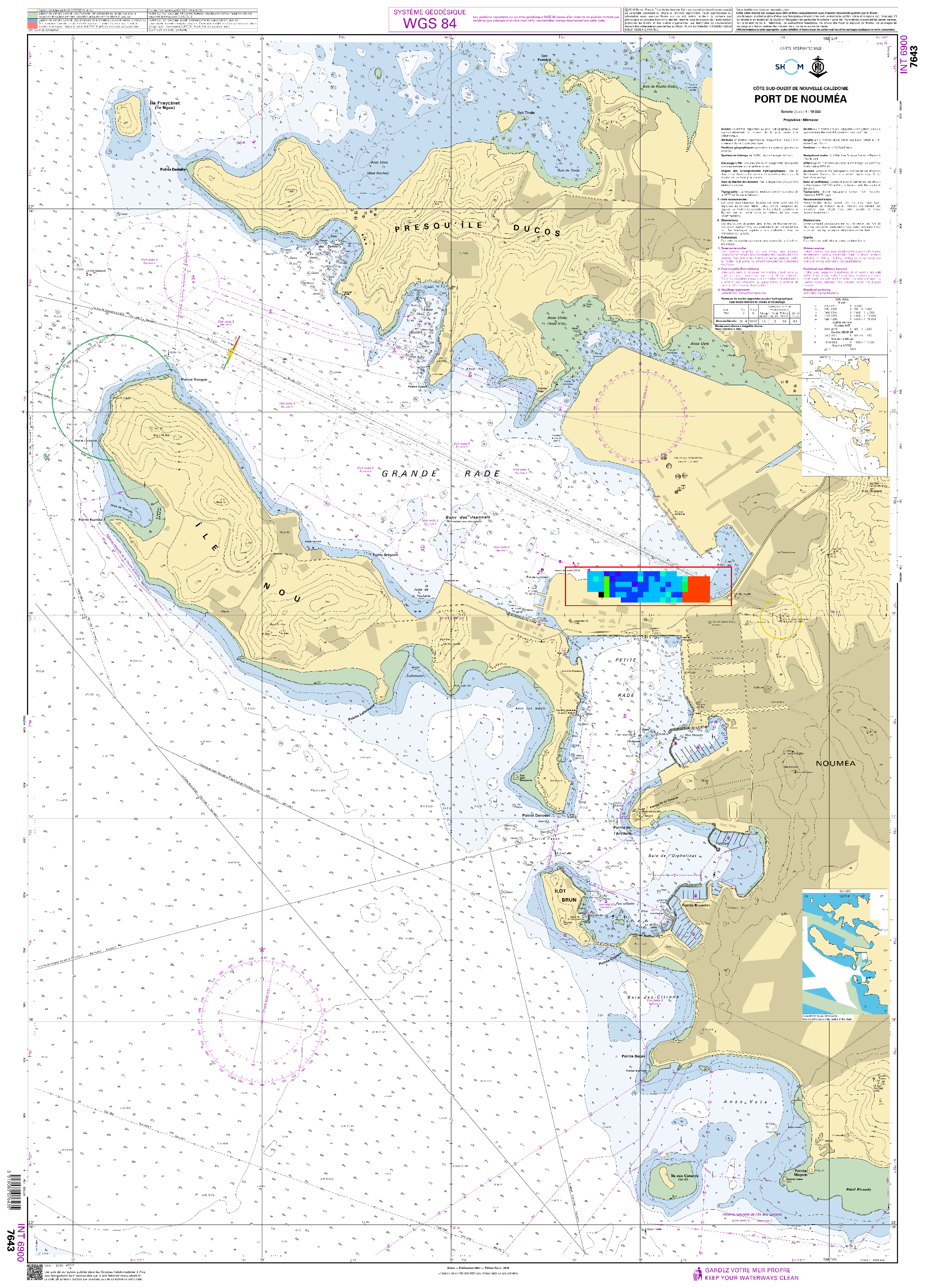 Bathymetric datasets are an extraction of surveys belonging to the Shom public database. For depth up to 50m, the vertical precision of soundings varies from 30cm to 1m and the horizontal precision varies from 1 to 20m. In deep ocean, the vertical precision is mainly around 1 or 2% of the bottom depth. It is sometimes more, it depends on the technology used. The data are referenced to ZH which is assimilated to LAT. Data are corrected for sound velocity variations. Data are acquired during the campaign S199802400 (http://dx.doi.org/10.17183/S199802400). // Instruments: sondeur deso 20 // Number of soundings: 1194