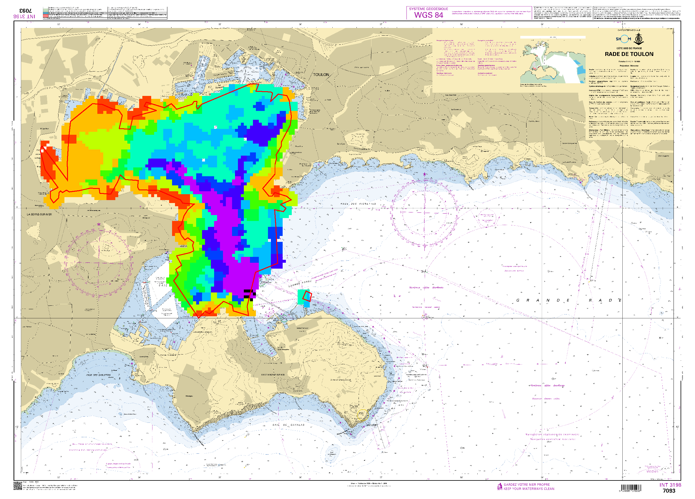 Bathymetric datasets are an extraction of surveys belonging to the Shom public database. For depth up to 50m, the vertical precision of soundings varies from 30cm to 1m and the horizontal precision varies from 1 to 20m. In deep ocean, the vertical precision is mainly around 1 or 2% of the bottom depth. It is sometimes more, it depends on the technology used. The data are referenced to ZH which is assimilated to LAT. Data are corrected for sound velocity variations. Data are acquired during the campaign S193900500 (http://dx.doi.org/10.17183/S193900500). // Instruments: Plomb poisson // Number of soundings: 17519